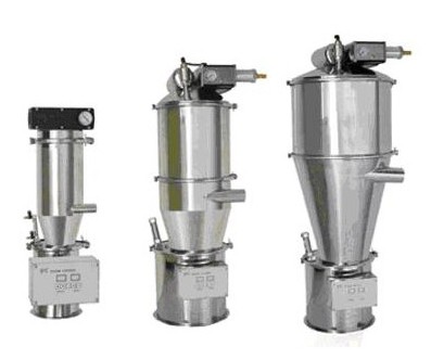 气动真空上料机是利用压缩空气通过真空发生器产生高真空实现对物料的输送,不需要机械式真空泵,具有结构简单、体积小、免维修、噪音低、控制方便、物料静电和符合GMP要求等优点。真空发声器产生的高真空,避免被输送的物料出现分层现象,保证了混合物料成分的均一性,是压片机、胶囊填充机、干法制?;?、包装机、粉碎机、振动筛等机械自动上料的优先选择的设备。当压缩空气供给真空发生器时,真空发生器就产生负压形成真空气流,物料被吸入上料咀,形成物气流,经过上料管到达上料机的料仓内。过滤器把物料与空气进行分离,当物料装满料仓时,控制器会自动切断气源,真空发生器停止工作,同时料仓门自动开启,物料落到设备的料斗中。与此同时,压缩空气通过脉冲反吹阀自动清洗过滤器。等到时间到或料位传感器发出上料信号时,自动启动真空上料机。非常简单方便。