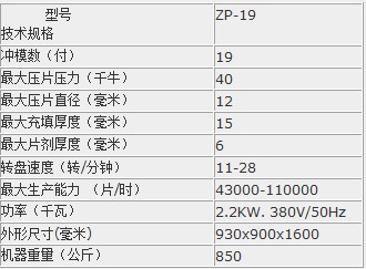 2、旋转式压片机适用于能压制成片剂(本机压力范围内)的,而且含粉量(100目以上)不超过10%的颗粒状原料的压制。