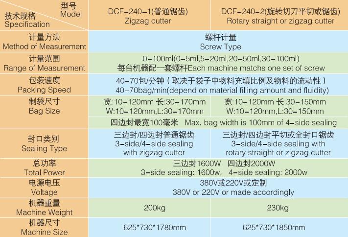 DCF-240-1/DCF240-2 平三边封/四边封粉末包装机